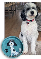 Enter our 4-year-old Bernedoodle, Koji, who had never shown a ton of interest in eating (crazy, right?) and our daughter, Melissa, who is an avid Daily Kibble reader. She saw the Faux Paw Custom Bowl set featured in our February Deal of the Month and had an idea. Maybe, just maybe, Koji would be more interested in his food if the bowl containing it had a familiar face that he knows and trusts...himself!