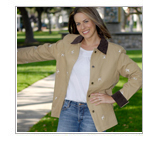 Dancing Dog Design offers the breed enthusiast stylish and well-made products in your choice of 29 popular and beautiful breeds. Each embroidery is meticulously designed to capture your favorite breed. Canine Coat sports embroidered dogs (choose your favorite breed) dancing all over the most flattering washed canvas jacket, fully lined with corduroy collar and cuffs.